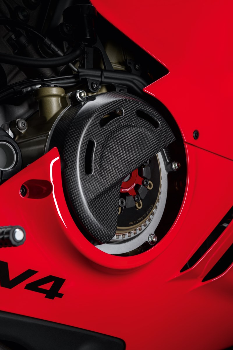 De droge STM EVO‑SBK koppeling geeft de V4‑modellen dezelfde directe, racegerichte beleving als in de MotoGP. De koppeling is volledig uit billet aluminium gefreesd en gebruikt een 48‑tands pakket met negen aangedreven en negen gevoerde platen van 138 mm. Door de droge constructie reageert de motor bij terugschakelen veel gecontroleerder en werkt de slipperfunctie merkbaar effectiever, zelfs bij agressief remmen voor een bocht. Het gas dichtdraaien voelt vloeiender en het motorremniveau is eenvoudig aan te passen via verschillende secundaire veren. Omdat de koppeling niet in olie draait, blijft de motorolie schoner en ontstaat er minder interne weerstand. Het mechanische geluid en het pure racekarakter maken deze upgrade extra aantrekkelijk voor rijders die hun V4 een echte superbike‑ervaring willen geven.