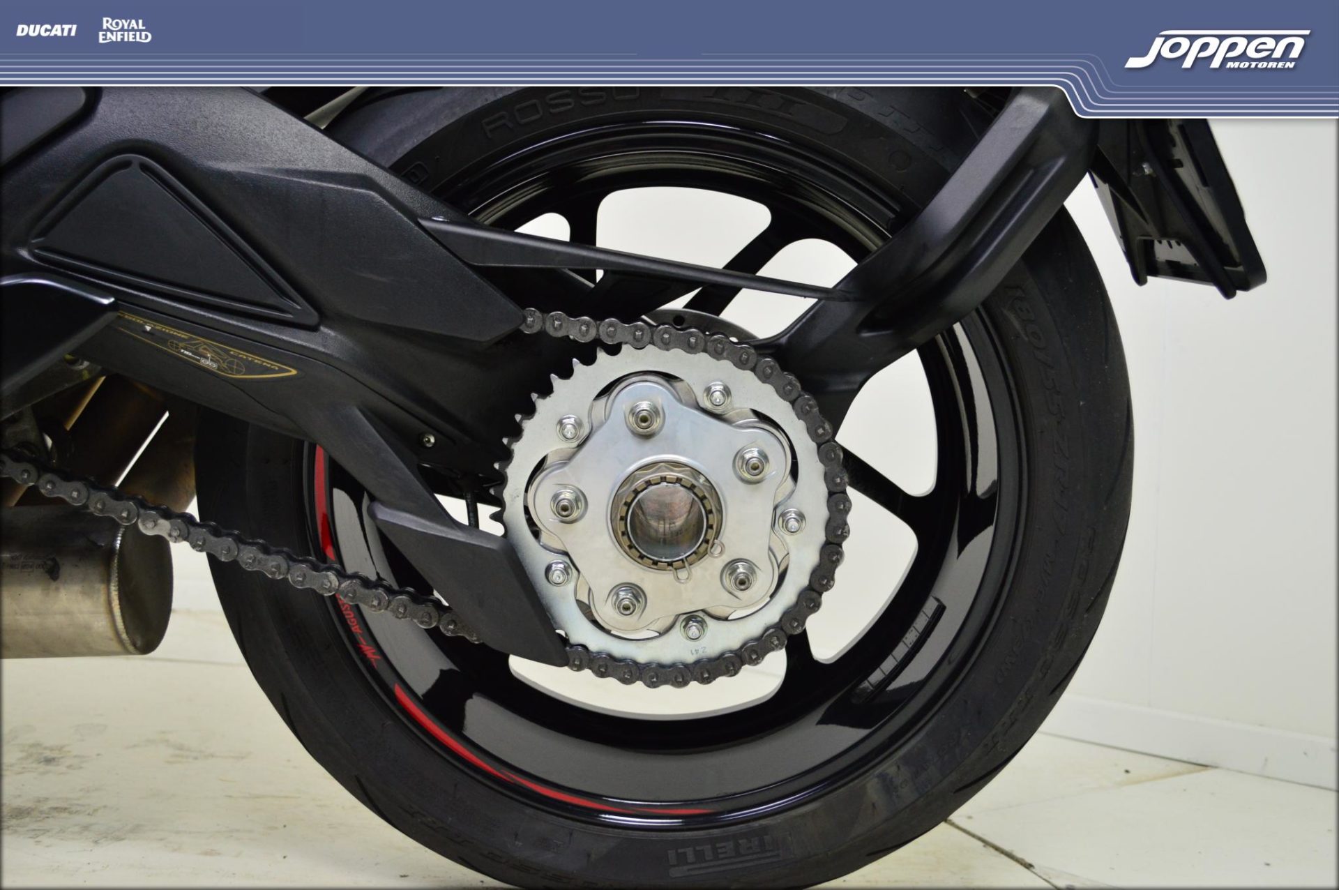De kracht wordt via een handgeschakelde 6?versnellingsbak overgebracht op de achterband — eindoverbrenging via ketting — wat zorgt voor directe, rauwe respons, een scherp rijgevoel en pure naked?bike performance.