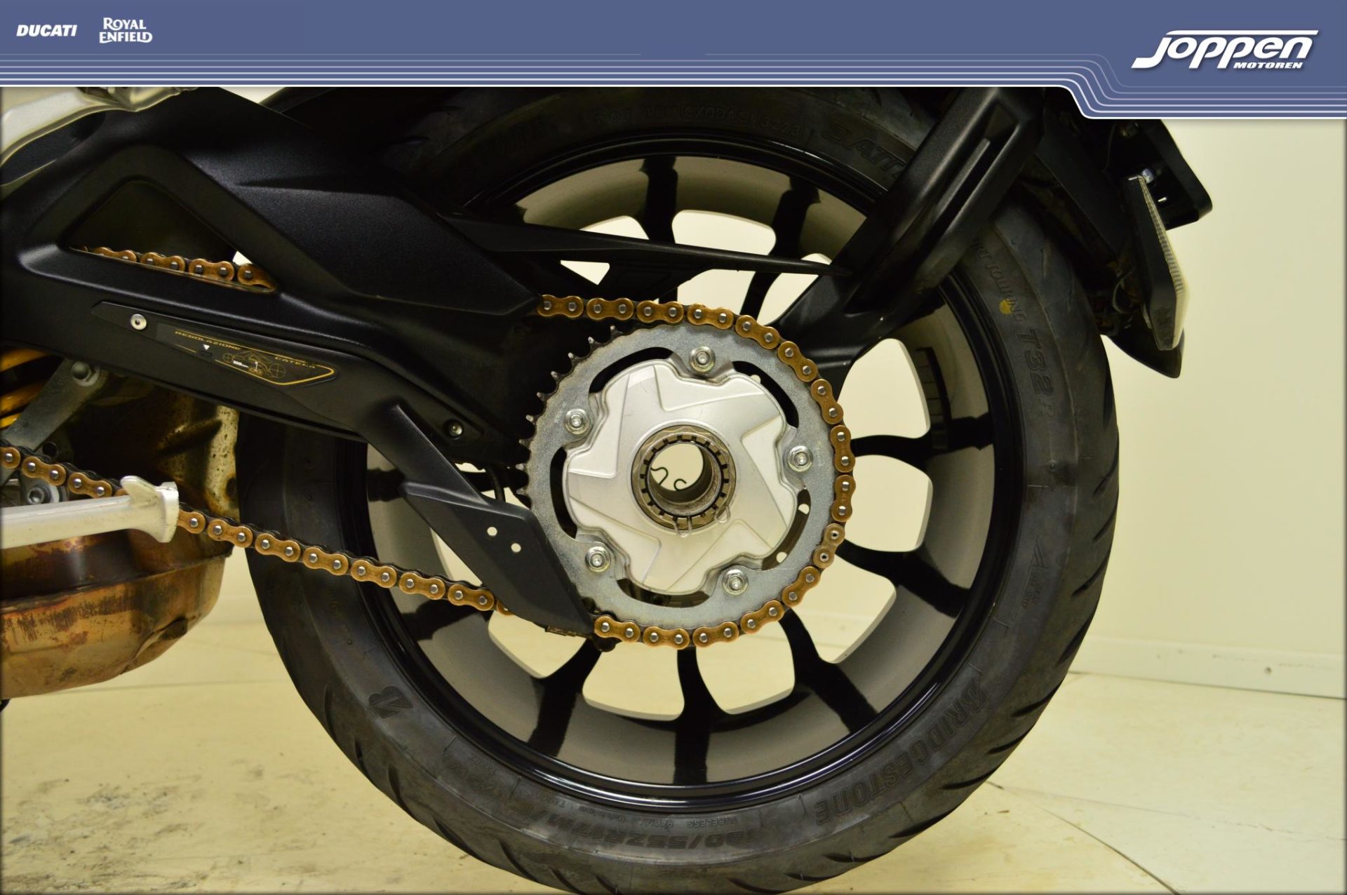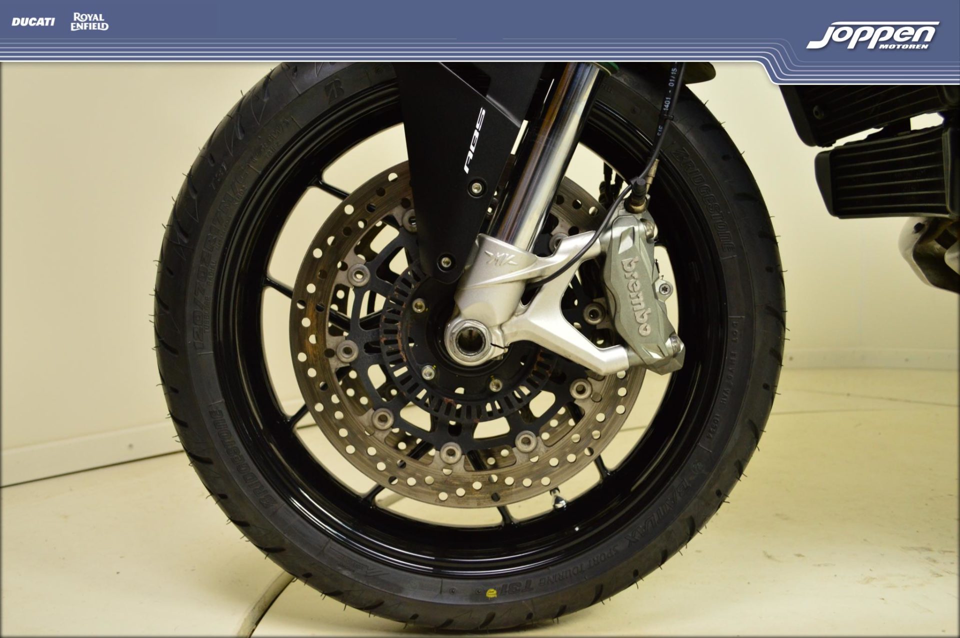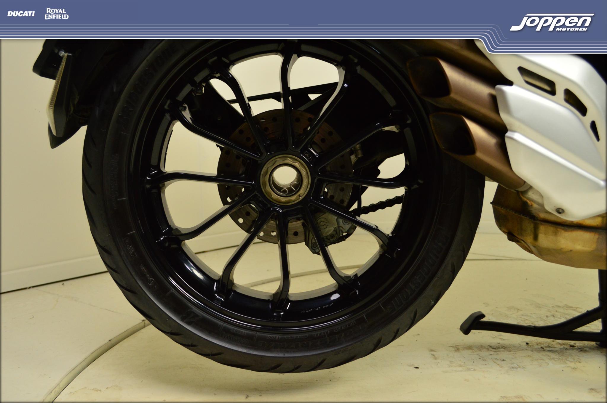 Voorwiel en achterwiel zijn uitgerust met lichtmetalen velgen, en de remmen bestaan uit tweemaal 320 mm voor- en 220 mm achterschijf met Brembo monobloc remklauwen, ondersteund door ABS. Hierdoor geniet je van uitzonderlijke remkracht en nauwkeurige controle.